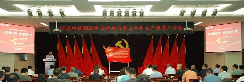 在建黨102周年之際,河冶科技2023年思想政治暨上半年生產(chǎn)經(jīng)營工作會于7月7日在公司多功能廳召開。參加會議的有公司黨委委員、經(jīng)理層、中層干部、黨支部書記、部門骨干、采購營銷人員、團委委員和子公司河冶住商黨總支委員及經(jīng)理層人員等共計130余人。會議由公司黨委副書記、常務(wù)副總經(jīng)理梁敬斌主持。