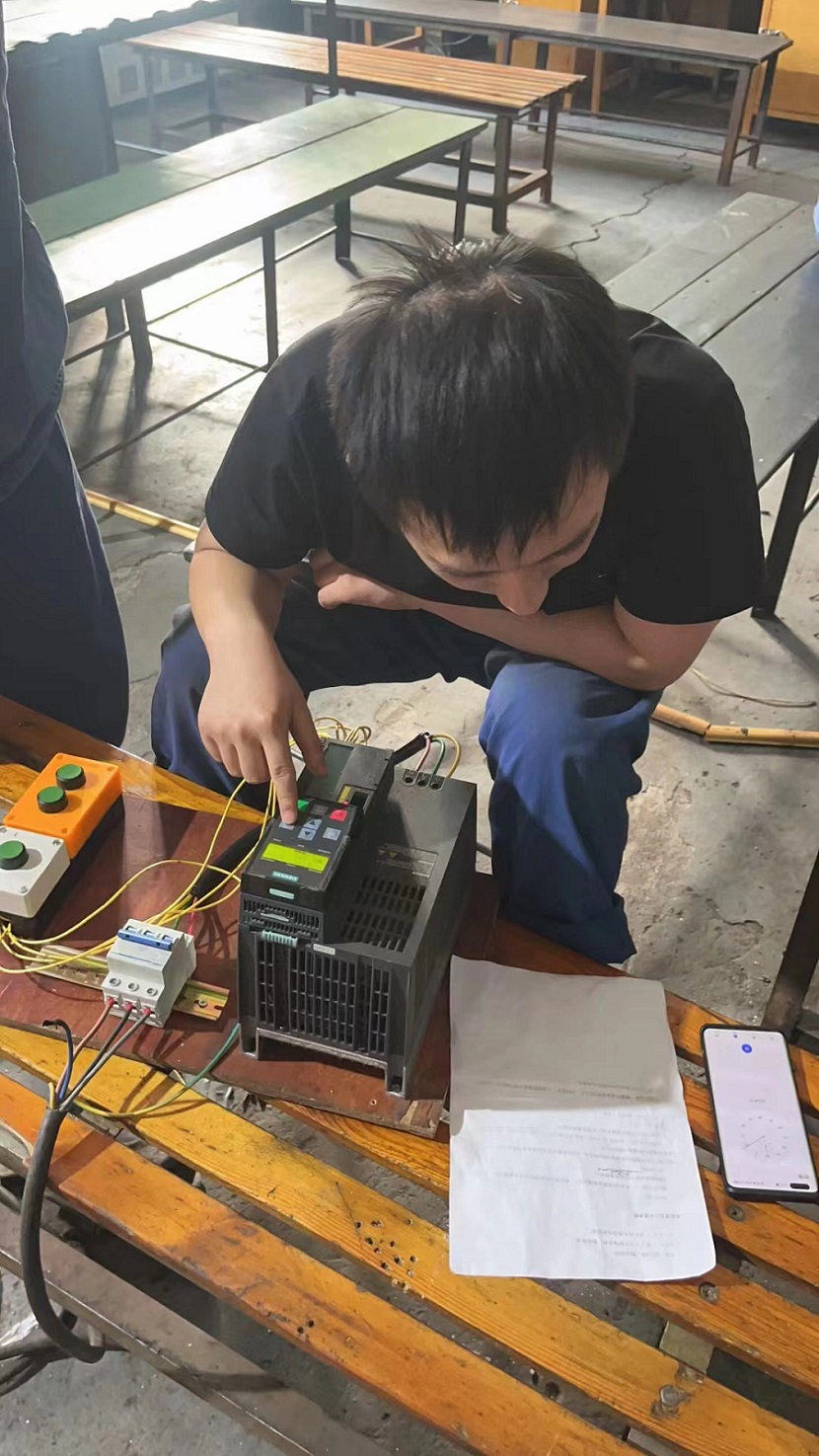 競賽由理論測試與實際操作兩部分組成。理論測試密切結合現(xiàn)場應用,以電氣安全、崗位技能基礎、節(jié)能關注點、邏輯控制電路設計分析能力等為主,主要考察電工的理論知識水平。實際操作考試測試現(xiàn)場應用比較普遍的電機變頻控制電路接線操作與調試,選定現(xiàn)場實際使用的電機,以西門子G120變頻器為基礎,測試參賽人員對電路設計、接線安裝、通電測試的實操技能,以考察變頻電機的可靠安裝或者典型故障排查能力,既考察維修質量,也考察維修效率。