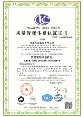 2000年10月,公司依據(jù)ISO9001:1994標(biāo)準(zhǔn),建立了質(zhì)量管理體系,通過(guò)了中國(guó)機(jī)械工業(yè)質(zhì)量體系認(rèn)證中心(現(xiàn)中聯(lián)認(rèn)證中心北京有限公司)認(rèn)證;